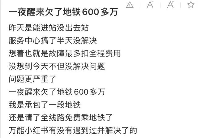一夜暴“負(fù)”,網(wǎng)友一覺醒來(lái)欠地鐵600多萬(wàn),發(fā)帖求助上熱搜